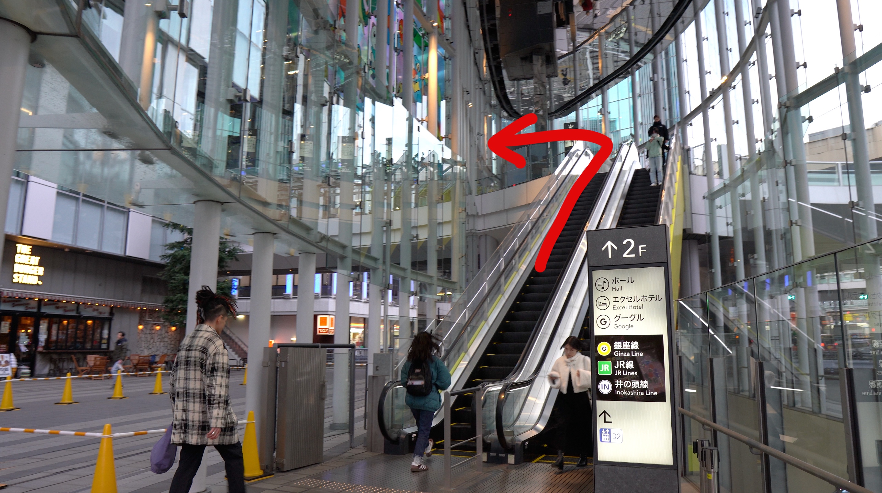 【4】SHIBUYA STREAMを2階まで上がった後に左折し、建物内に入りましょう。