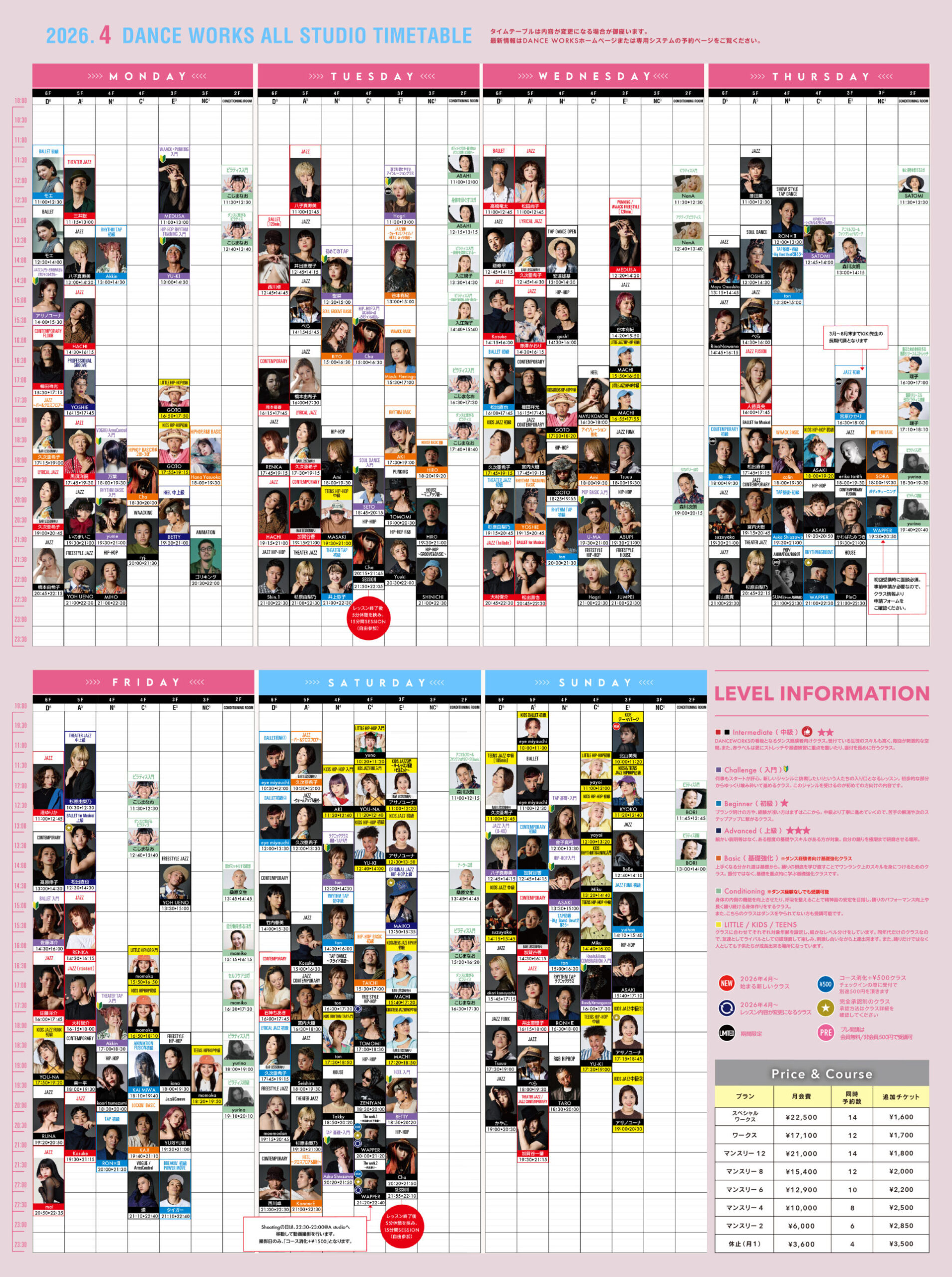 | E studio | 17:20 - 18:50 | MACHI / KIDS&TEENS JAZZ HIPHOP中級 |