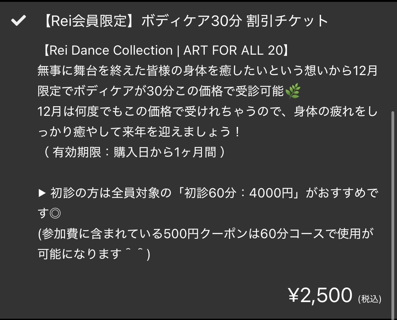 【Rei発表会参加者限定】ボディケア30分クリスマス割引案内(予約方法)