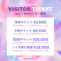 2025.12.10 【年末大感謝キャンペーン:会員/ビジター向け】追加&限定価格チケット販売(12/10〜12/31) 2025年の感謝の気持ちを込めて \年末大感謝キャンペーン/ いつもDANCEWORKSをご利用頂き誠にありがとうございます。 購入期間:12月10日(水)〜12月31日(水)...もっと読む スタジオニュース 2025.11.25 【Newクラス開講記念】TARO / R&B HIPHOP プレ開講決定🎉 --- 𝐖𝐄𝐋𝐂𝐎𝐌𝐄 𝐭𝐨 𝐃𝐀𝐍𝐂𝐄 𝐖𝐎𝐑𝐊𝐒 --- TARO instagram ╭┉┉┅┄┄┈ • ┈┄┄┅┉┉╮ class information 🆕 R...もっと読む スタジオニュース NEWクラス 2025.11.17 【2025-2026】年末年始休業のお知らせ / New Year Special Lesson開催 【2025-2026】年末年始休業のお知らせ 平素よりDANCE WORKSをご利用いただき誠にありがとうございます。 下記の期間は冬季休業となります。 2025年12月...もっと読む スタジオニュース 2025.11.04 【特別休館】11/22(土) 〜17:00まで全館休講のお知らせ 日頃よりDANCE WORKSのご利用誠にありがとうございます。 上記日程は渋谷区協賛及びスタジオメンテナンスの関係により 10:30〜17:00は全館休講 となり17:20以降の...もっと読む スタジオニュース 2025.11.04 【DANCE WORKS KIDS】お友達紹介キャンペーン \みんなで踊ろう/ お友達紹介キャンペーン DANCE WORKSの会員さまが、お友達を誘って体験レッスンをご受講いただき、 ご入会を決めていただくと、 ご紹介者様 / ご入会者様...もっと読む スタジオニュース 2025.10.18 【体験者様 / 会員様向け】昭和100年記念&昭和歌謡祭 開催記念キャンペーン ※10/19更新 \ 💃帰ってきた!DANCE WORKS昭和歌謡祭!!🕺 / 開催記念 & 昭和100年記念 ゲリラキャンペーン💥 対象期間:10/20 mon 〜 10/31 fr...もっと読む スタジオニュース 2025.09.27 【お知らせ】コンディショニングクラスの受講条件 / 妊娠中の方に関して CONDITIONING CLASS - 妊娠中の方の受講について - DANCE WORKS / CONDITIONING WORKSでは、 妊娠中の方が安心してクラスにご参加...もっと読む スタジオニュース Conditioning Class 2025.09.09 【 10月ラストチャンス! 】今月限定!再入会キャンペーン🎃 \ おかえりなさい!再入会キャンペーン / 一回DANCE WORKSから離れてしまった方も 新年度で心機一転!またWORKS戻ってこれるチャンス🌠 レベルが高...もっと読む スタジオニュース 2025.08.08 🧘♀️ PICK UP CONDITIONING 🌿 🧘♀️ \当日限定!/🧘♀️ 🧘PICK UP CONDITIONING 🌿🧘 期間中すべてのコンディショニングクラスが 👉8月中は ¥1,000 で受講可能! ~~~~...もっと読む スタジオニュース 2025.07.31 【ひよこ割】新しいスタッフが増えました🐣🌳 【🐣"夏のひよこ"割始まります🌳】 コンディショニングワークス整体院にこの夏‼️ 新しいスタッフが増えましたっ デビューにともない、施術を通して多くの皆さまに関わるこ...もっと読む スタジオニュース コンディショニングワークス整体院 2025.06.19 【 2025.07〜 】CLASS INFORMATION 【 2025.07月〜NEW CLASS 】 《 CLASS COMMENT by 谷本有紀 》 ここでは水曜日のクラスで時間的に伝えきれない ...もっと読む スタジオニュース NEWクラス 2025.05.31 【 2025.06〜 】CLASS INFORMATION 【 2025.06月〜NEW CLASS 】 《 CLASS COMMENT by mai 》 音楽も踊りも 正解はひとつじゃないです。 見て盗み、聴い...もっと読む スタジオニュース NEWクラス 1 2 3 »