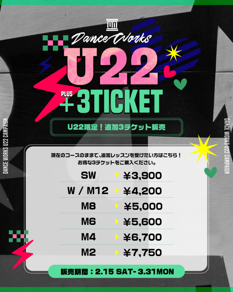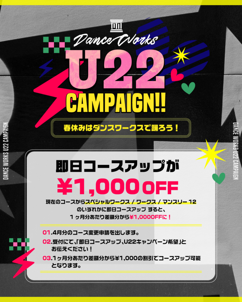 【会員様向け/22歳以下】春休みはダンスワークスで踊ろう!U22キャンペーン