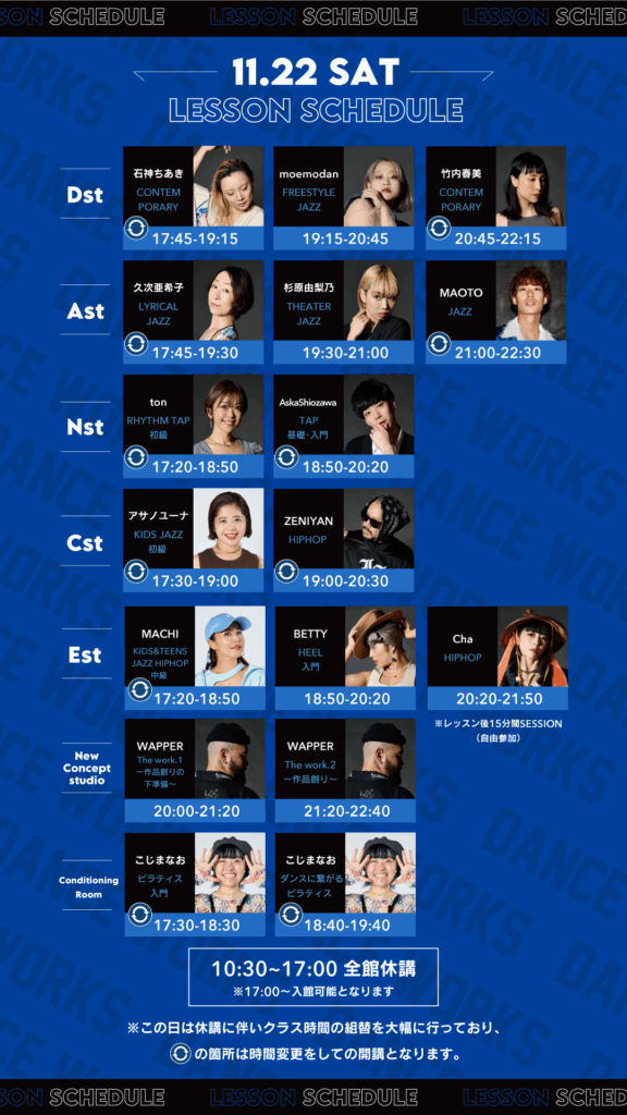 【特別休館】11/22(土) 〜17:00まで全館休講のお知らせ