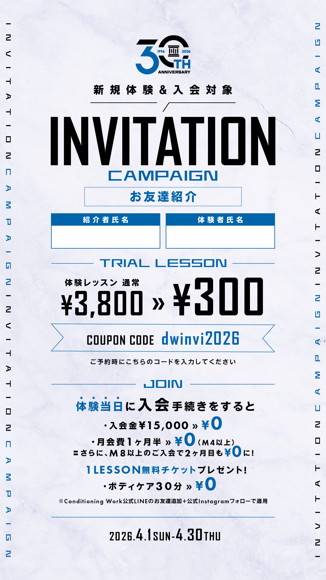 ※Conditioning Work公式LINEのお友達追加+公式Instagramフォローで適用